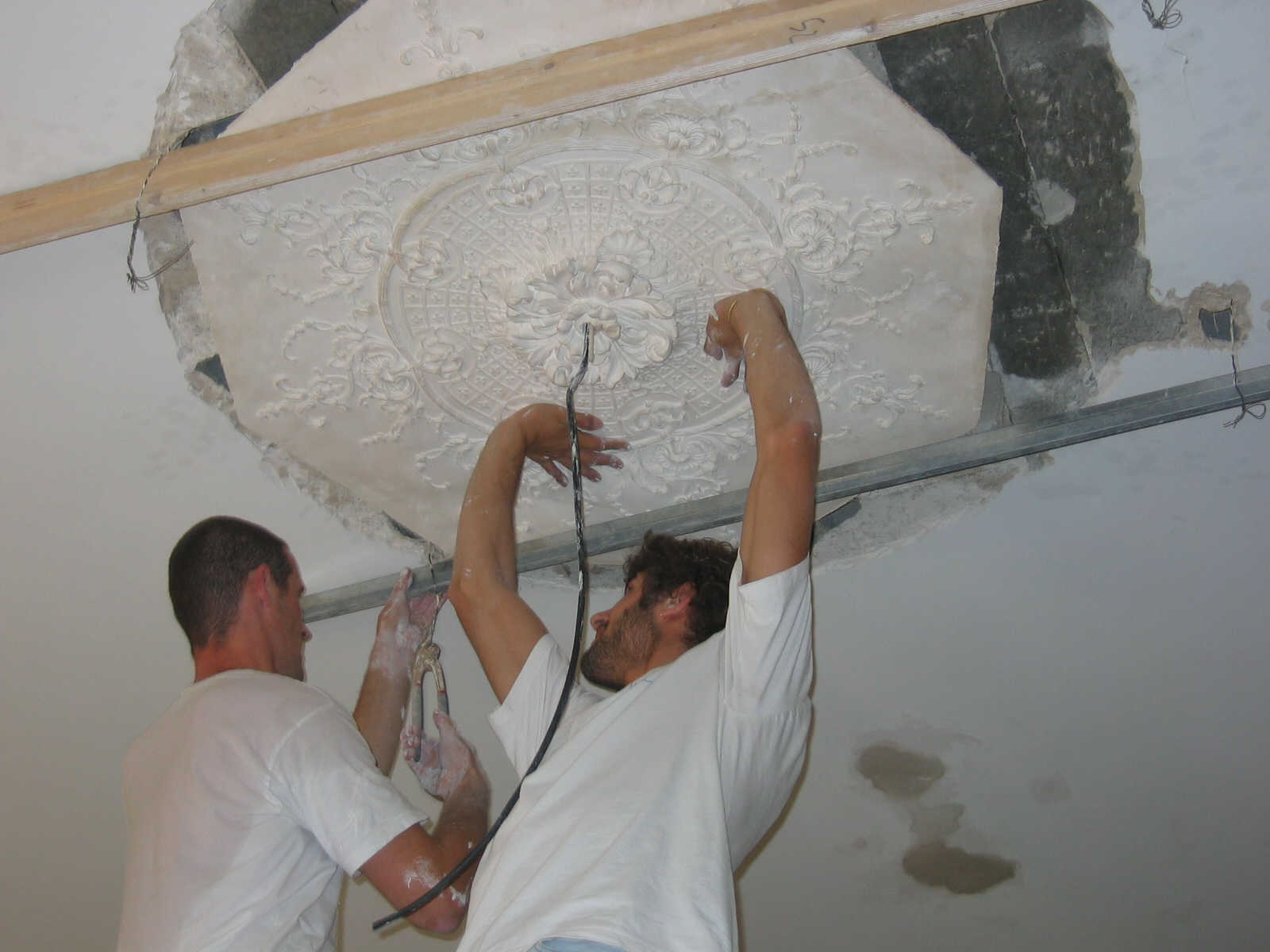 Restauration de sculptures en pierre : Façades de l'hôtel de Ville d'Arles (Boûches-du Rhône) : nettoyage par micro gommage et laser des sculptures monumentales. Sculpture en conservation d'après modèles : Statues de l'arc de Triomphe de la Porte d'Aix à Marseille. Restauration de décors en gypserie et staff : Consolidation et reprise des décors à l'Hôtel particulier d'Arlatan Lauris à Aix en Provence. Création des décors à Lioux (Vaucluse) Restauration d'objets : sculptures en bois, pierre, pièces archéologiques Crucifix d'Ortiporio (Corse) Statue de St Roch ![]() |